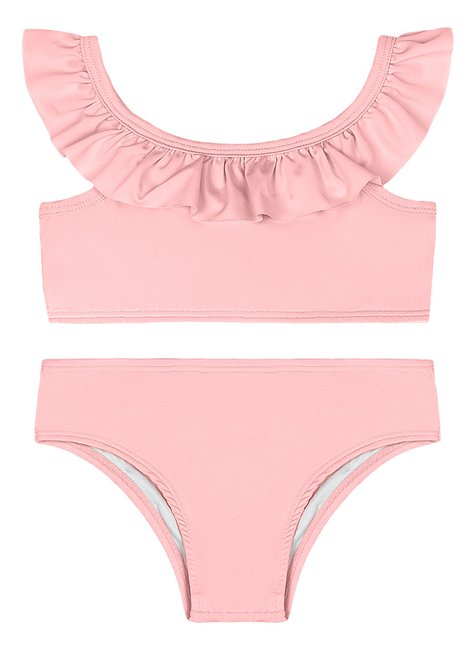 Biquíni infantil confeccionado em malha UV Dry (poliéster com elastano), com proteção solar FPS 50+, ideal para os dias de sol com mais segurança e conforto. O top com alças largas traz babado franzido na parte frontal, adicionando delicadeza e charme ao visual. Conta com forro interno para maior conforto. A calcinha é forrada na frente e atrás e possui elástico embutido na cintura e nas pernas, garantindo ótimo ajuste ao corpo. Um conjunto alegre, funcional e estiloso para aproveitar a praia ou piscina com liberdade.