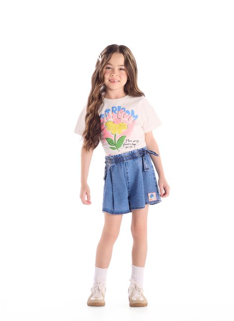 Blusa infantil em meia malha, uma ótima escolha para compor looks casuais e cheios de personalidade. Possui gola arredondada em ribana, costura reforçada e uma estampa vibrante, que combina estampa de flor com detalhes em strass e uma frase divertida. Além disso, conta com uma etiqueta decorativa. Ideal para os dias mais quentes, combina com shorts, saias ou calças, mantendo as meninas frescas e confortáveis.