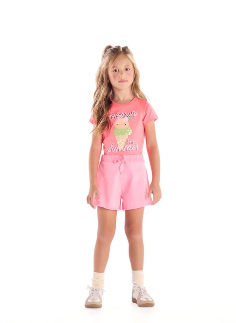 Blusa para menina confeccionada em algodão, proporcionando conforto e bem-estar no dia a dia. Possui estampa com bordado Celebrate the Summer, que dá um toque descontraído a peça. Conta ainda com mangas curtas, gola arredondada em ribana e costura reforçada. Perfeita para acompanhar a rotina das meninas com estilo. Pode ser usada com shorts, saias ou calças leves.