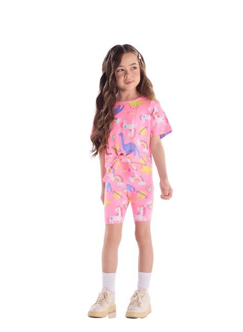 Blusa Infantil feminina, ideal para os dias quentes. Confeccionada em algodão com elastano oferecendo conforto e bem-estar, Possui manga curta, costura reforçada, amarração frontal dando um toque delicado a peça, além da estampa rotativa colorida e divertida proporcionando estilo para as meninas. Uma escolha versátil que combina com shorts, saias ou calças para um look fofo e confortável.