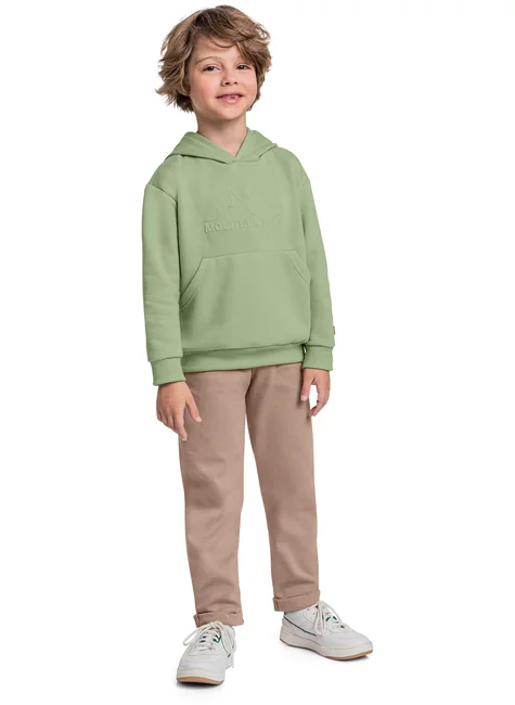 Blusão infantil para menino, confeccionado em moletom macio e confortável, e perfeito para os dias mais frios. Possui capuz para maior proteção, bolso canguru para praticidade e um incrível bordado embossing de montanha, que traz um toque moderno e despojado ao look. Super estiloso e quentinho para os pequenos aventureiros.