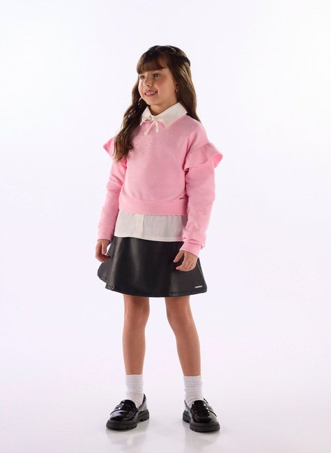 Um toque de brilho e delicadeza para os dias frios! O blusão infantil feminino é confeccionado em molecotton com felpa, trazendo conforto térmico e elasticidade. Conta com aplicação de strass no peito, recorte com babado franzido nas mangas e acabamento em ribana. Um modelo fofo e super versátil para compor os looks de inverno das pequenas.