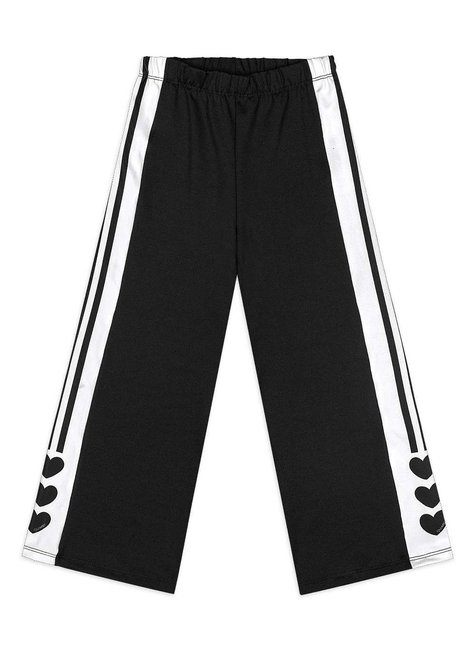 Calça esportiva infantil em malha com elastano, com recorte lateral sublimado em formato de corações. Possui elástico de 3cm na cintura e acabamento com costuras finas. Ideal para compor looks com a jaqueta ref. 34860.