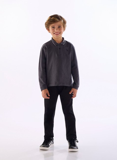 Produzida em piquet conforto, a polo infantil para menino oferece maciez e elasticidade para o dia a dia. A composição em algodão com elastano garante conforto térmico e liberdade nos movimentos. O modelo apresenta gola e punhos em retilínea, abertura frontal com dois botões e filete no decote. O bordado discreto no peito adiciona um toque elegante, enquanto o acabamento em pesponto e bainha dupla valoriza a peça.