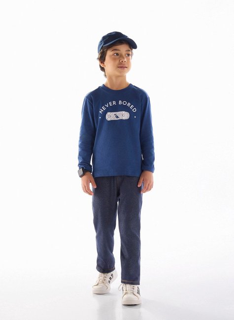 Camiseta infantil de manga longa confeccionada em malha 100% algodão. Possui estampa frontal com temática divertida, garantindo conforto e um visual descolado para o dia a dia.