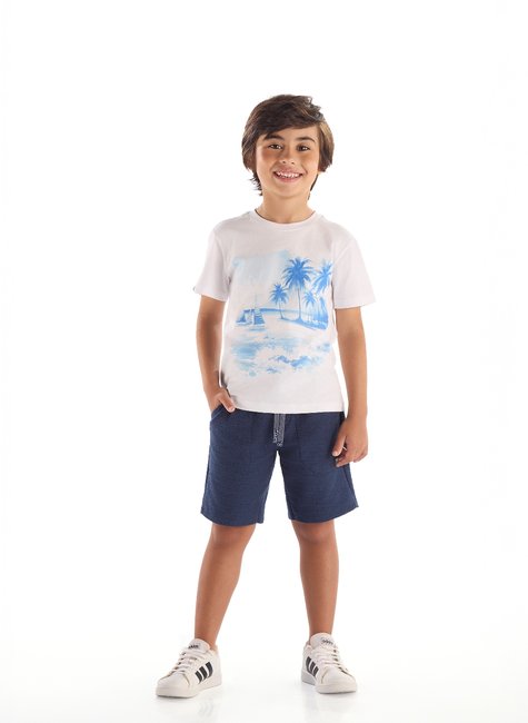 Com visual leve e confortável, esta camiseta infantil masculina é perfeita para os dias de verão. Produzida em meia malha (Algodão), oferece toque macio e caimento soltinho. A estampa frontal retrata um cenário praiano com veleiros e palmeiras, ideal para compor looks descontraídos. Possui acabamento na gola reforçado em ribana (Algodão) e detalhe de etiqueta em corino na manga. Uma peça versátil, prática e cheia de estilo.