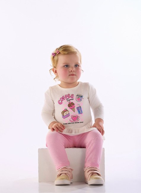 Este conjunto para bebê menina é confeccionado em cotton leve com toque macio e elasticidade, garantindo liberdade e conforto durante o uso. A blusa conta com estampa divertida com tema coffee e aplicação de strass, além de babado franzido na barra que dá um charme especial. A legging tem cós elástico rebatido e modelagem ajustada ao corpo, ideal para acompanhar todos os movimentos da bebê. Uma opção delicada e funcional para o dia a dia.