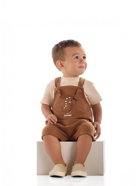 Conjunto para bebê menino, que combina estilo e conforto para os pequenos. Composto por camiseta em tecido de algodão, leve e macia, com costura reforçada e gola arredondada em ribana. Acompanha jardineira confeccionada em tecido gorgurão, que garante praticidade e liberdade de movimento. Possui estampa de dinossauro, alças que passam por caseados e fechamento com botões de pressão entre as pernas, facilitando na hora de vestir e trocar. Conjunto ideal para os dias de verão: resistente, confortável e cheio de estilo.