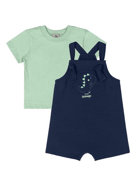 Conjunto para bebê menino, que combina estilo e conforto para os pequenos. Composto por camiseta em tecido de algodão, leve e macia, com costura reforçada e gola arredondada em ribana. Acompanha jardineira confeccionada em tecido gorgurão, que garante praticidade e liberdade de movimento. Possui estampa de dinossauro, alças que passam por caseados e fechamento com botões de pressão entre as pernas, facilitando na hora de vestir e trocar. Conjunto ideal para os dias de verão: resistente, confortável e cheio de estilo.