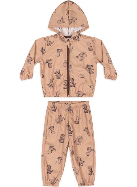 Conjunto de inverno para bebê menino, ideal para os dias mais frios. Confeccionado em microfibra, poliéster e elastano, o tecido é leve, macio e oferece liberdade de movimento. A jaqueta conta com capuz de acabamento embutido, zíper frontal com proteção no topo e bolso canguru funcional. A calça complementa o conjunto com cós e barra com elástico, facilitando o vestir e garantindo ótimo ajuste ao corpo. O destaque fica por conta das peças com estampa coordenada e rotativa de pequenos dinossauros, que proporcionam um visual lúdico e moderno ao look. Perfeito para passeios, creche ou momentos em família, é prático e charmoso para manter os pequenos aquecidos durante a temporada de frio.