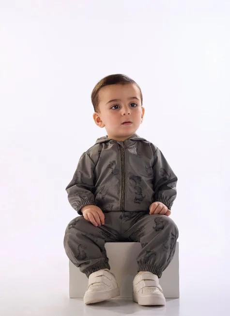 Conjunto de inverno para bebê menino, ideal para os dias mais frios. Confeccionado em microfibra, poliéster e elastano, o tecido é leve, macio e oferece liberdade de movimento. A jaqueta conta com capuz de acabamento embutido, zíper frontal com proteção no topo e bolso canguru funcional. A calça complementa o conjunto com cós e barra com elástico, facilitando o vestir e garantindo ótimo ajuste ao corpo. O destaque fica por conta das peças com estampa coordenada e rotativa de pequenos dinossauros, que proporcionam um visual lúdico e moderno ao look. Perfeito para passeios, creche ou momentos em família, é prático e charmoso para manter os pequenos aquecidos durante a temporada de frio.