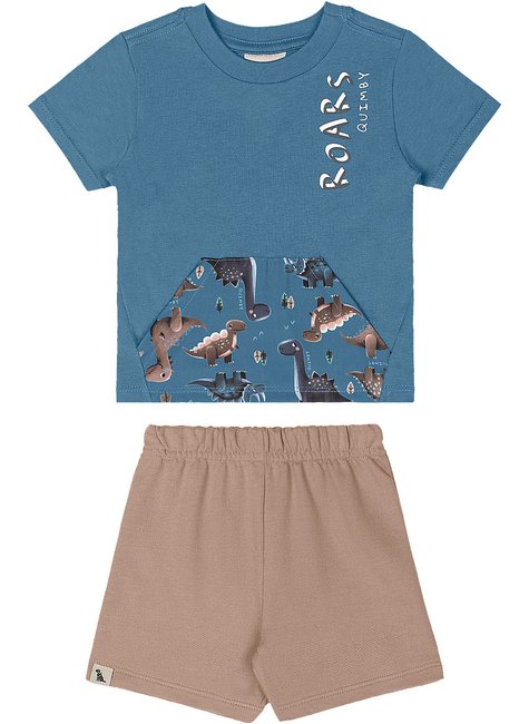 Conjunto para menino, Criado para unir diversão e conforto. A camiseta, feita em algodão, é leve e perfeita para os dias quentes de verão. Possui bolso frontal estampado com dinossauros, estampa no peito com escrita junto com o nome da marca, contém gola arredondada em ribana e mangas curtas. A bermuda é confeccionada em moletom sem felpa, e conta com elástico na cintura, oferecendo conforto e permitindo total liberdade de movimento. Peças ideais para passeios, brincadeiras e momentos em família.