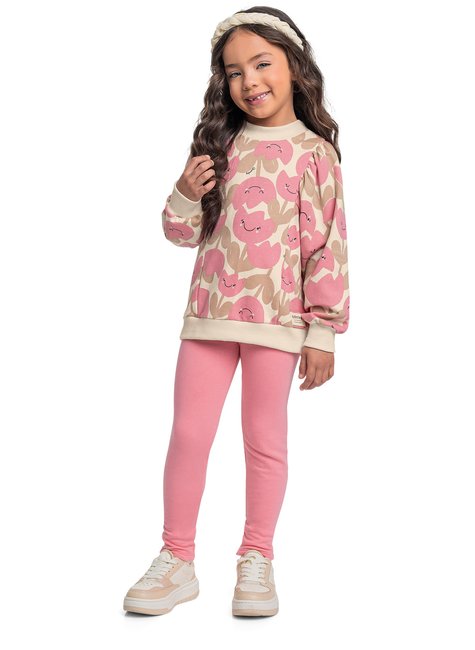 Conjunto infantil para menina, confeccionado em molecotton. O blusão possui gola alta, punhos e barra que garantem um ajuste aconchegante, além de mangas bufantes que adicionam um toque encantador. A estampa com flores simpáticas traz um visual alegre e delicado. A legging conta com elástico na cintura, garantindo um ajuste perfeito e confortável.