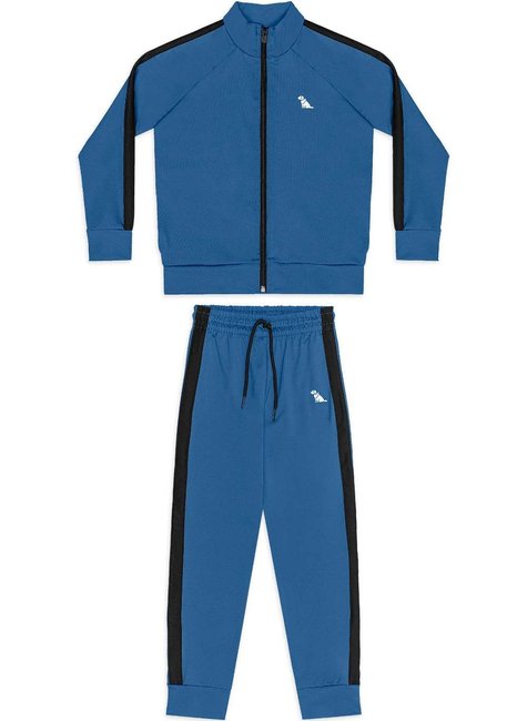 Conjunto esportivo infantil composto por jaqueta com gola alta e calça com elástico confortável. Confeccionado em malha sport com elastano, oferece toque macio e liberdade de movimentos. Possui zíper frontal, bolsos funcionais e recortes com aplicação de filete em contraste, garantindo um visual esportivo e moderno.