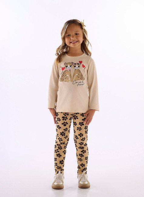 Charmoso e delicado, este conjunto infantil feminino é composto por blusa de manga longa em meia malha 100% algodão, com estampa de gatinhos e aplicação de strass para um toque especial. Acompanha legging em cotton leve (96% algodão, 4% elastano) com estampa floral, que garante conforto e liberdade de movimentos. Ideal para o dia a dia ou passeios nos dias amenos.