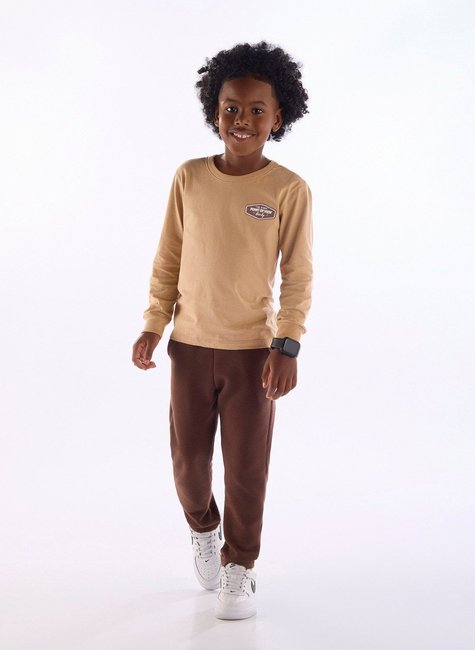 Este conjunto infantil masculino traz camiseta em meia malha de algodão com estampa frontal em 3D e acabamento em debrum. A calça em gorgurão conta com elástico rebatido na cintura, bolsos funcionais e etiqueta decorativa clips bordada, garantindo conforto e estilo.