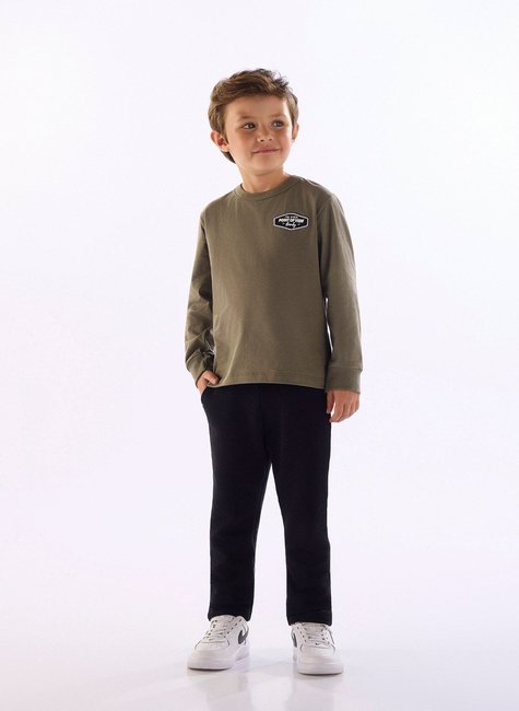 Este conjunto infantil masculino traz camiseta em meia malha de algodão com estampa frontal em 3D e acabamento em debrum. A calça em gorgurão conta com elástico rebatido na cintura, bolsos funcionais e etiqueta decorativa clips bordada, garantindo conforto e estilo.
