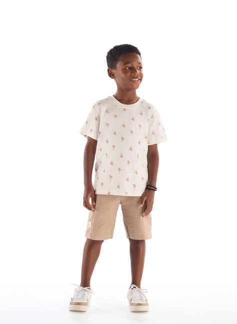 Com um visual atual e um toque natural, este conjunto infantil masculino reúne conforto, autenticidade e estilo. A camiseta em meia malha (Algodão) rotativa possui estampa divertida e acabamento reforçado nos ombros, garantindo durabilidade e um caimento impecável. A bermuda em moletom flamê rustic (Algodão) apresenta textura rústica, cós com elástico, cadarço decorativo e bolsos funcionais, além de recortes que valorizam o design. Uma escolha ideal para os dias de verão, oferecendo liberdade de movimento sem abrir mão de charme e modernidade.