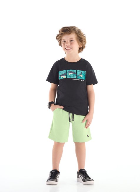 Este conjunto infantil para menino é perfeito para os dias mais quentes. A camiseta é feita em meia malha (Algodão), garantindo maciez e boa respirabilidade. Possui gola com acabamento em ribana e detalhe em debrum ombro a ombro, além de uma estampa divertida com temática lúdica. A bermuda, confeccionada em moletom sem felpa (Algodão com poliéster), oferece conforto e estilo com cós de elástico reforçado e cadarço decorativo. Conta ainda com bolsos funcionais e aplique termocolante emborrachado, tornando-se uma opção prática para o dia a dia. Ideal para passeios, escola ou momentos de lazer, une estilo e conforto no guarda-roupa do seu pequeno.