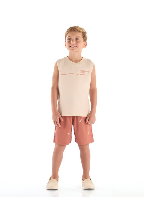 Ideal para os dias ensolarados e cheios de energia, este conjunto infantil masculino é a escolha perfeita para unir conforto e estilo. A regata, confeccionada em meia malha (Algodão), é leve, respirável e traz estampa frontal moderna com acabamento em ribana, garantindo frescor e bem-estar durante o uso. A bermuda, feita em microfibra com elastano (Poliéster e elastano), apresenta estampa sublimada vibrante e modelagem soltinha, que proporciona liberdade total nos movimentos. O cós com elástico largo e cadarço funcional assegura um ajuste perfeito e seguro ao corpo.