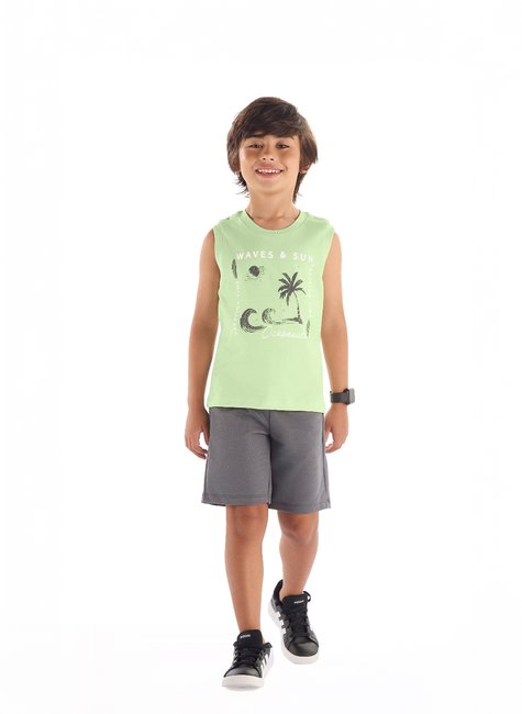 Confortável, prático e estiloso, este conjunto infantil masculino é a opção ideal para compor looks de verão. A regata em meia malha (Algodão) proporciona maciez e respirabilidade, com gola e cavas em ribana para acabamento reforçado e estampa frontal moderna que acrescenta um toque despojado. A bermuda em moletom sem felpa (Algodão e poliéster) combina conforto e resistência, bolsos laterais funcionais e cadarço decorativo que completa o visual com charme. Uma proposta versátil que acompanha o ritmo das crianças em brincadeiras, passeios ao ar livre e no uso diário, sempre com praticidade e conforto.