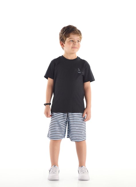 Perfeito para os dias quentes, este conjunto infantil masculino é a união ideal entre conforto e estilo. A camiseta, confeccionada em meia malha (Algodão), proporciona um toque macio e respirável, trazendo estampa moderna no peito e gola redonda com acabamento em ribana (Algodão) que valoriza o caimento. Já a bermuda, produzida em microfibra com elastano (Poliéster com elastano), exibe estampa sublimada listrada e conta com cós elástico, cadarço funcional e bolsos laterais, garantindo praticidade e liberdade total nos movimentos. Leve, despojado e versátil, é o look perfeito para acompanhar os meninos em dias de sol, brincadeiras e momentos de diversão.