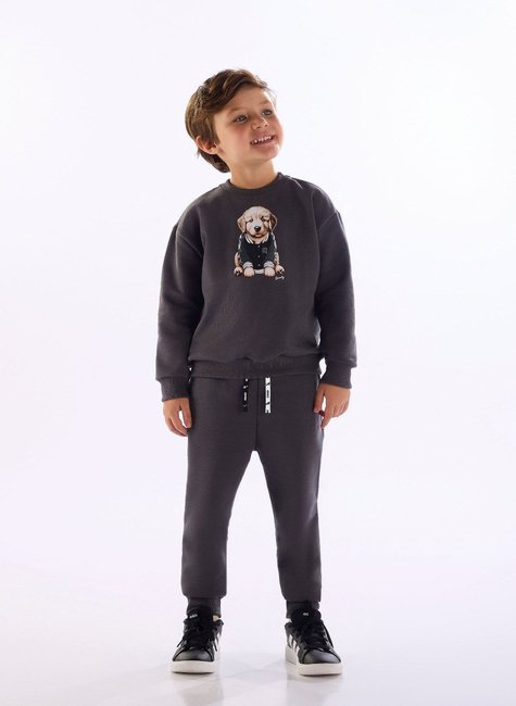 Conjunto infantil para menino, composto por blusão e calça confeccionados em moletom felpado de algodão e poliéster, que oferece sensação aconchegante e proteção térmica ideal para o inverno. O blusão possui costura reforçada e traz estampa termocolante de um cachorrinho, garantindo um visual lúdico. A calça conta com cós com elástico embutido, cadarço decorativo e bolsos funcionais, proporcionando praticidade para o dia a dia. Um look completo e estiloso para acompanhar os meninos em passeios, na escola ou em momentos de lazer.