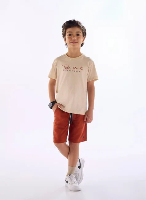 Conjunto para menino, composto por camiseta e bermuda. A camiseta, em malha de algodão, tem toque macio, estampa frontal moderna e acabamento reforçado com ribana, garantindo maior durabilidade. A bermuda, em moletom leve sem felpa, algodão com poliéster, oferece liberdade de movimento, com elástico largo na cintura, cadarço decorativo e bolso funcional com aplique termocolante da marca em corino. Uma escolha versátil para acompanhar os pequenos em passeios, brincadeiras ou momentos casuais, com muito conforto e personalidade.