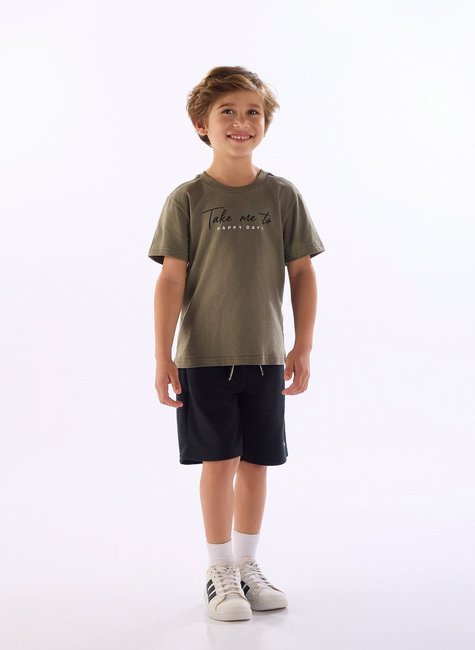 Conjunto para menino, composto por camiseta e bermuda. A camiseta, em malha de algodão, tem toque macio, estampa frontal moderna e acabamento reforçado com ribana, garantindo maior durabilidade. A bermuda, em moletom leve sem felpa, algodão com poliéster, oferece liberdade de movimento, com elástico largo na cintura, cadarço decorativo e bolso funcional com aplique termocolante da marca em corino. Uma escolha versátil para acompanhar os pequenos em passeios, brincadeiras ou momentos casuais, com muito conforto e personalidade.