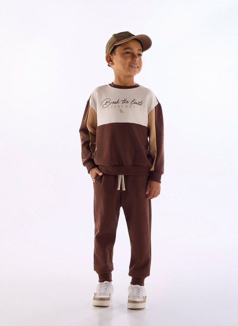Conjunto infantil masculino confeccionado em moletom felpado, ideal para os dias frios. O blusão apresenta recorte em contraste no peito e nas mangas, estampa frontal, acabamento em debrum e gola redonda. A calça possui cós com elástico rebatido, cadarço decorativo e bolso funcional com pesponto aparente. Os punhos da calça são ajustados, garantindo melhor caimento. Um conjunto confortável, moderno e cheio de estilo para o dia a dia.