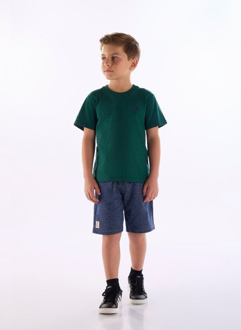 Conjunto infantil para menino, composto por camiseta e bermuda, ideal para dias mais frescos. A camiseta, confeccionada em meia malha de algodão, conta com gola em ribana, costura reforçada e aplique termocolante, que adiciona um toque exclusivo ao visual. A bermuda é confeccionada em moletom jeans de algodão e poliéster, oferecendo caimento leve, toque macio e excelente durabilidade para acompanhar a rotina ativa dos pequenos. O cós com elástico rebatido e cadarço funcional garante ajuste ideal, enquanto os bolsos laterais e o bolso traseiro trazem praticidade ao dia a dia. Perfeito para momentos de lazer, passeios ou até para a escola, é um look versátil que combina com diferentes ocasiões.