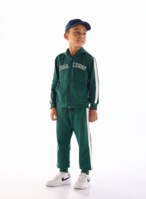Este conjunto infantil masculino é ideal para o inverno, composto por jaqueta e calça confeccionadas em moletom felpado, com toque macio e aquecimento na medida certa. A jaqueta possui capuz, estampa em 3D com efeito visual, aplique termocolante e fechamento frontal em zíper. Os detalhes incluem filetes aplicados no capuz e bolso canguru funcional. A calça conta com cós com elástico largo rebatido, cadarço decorativo e bolso com acabamento pespontado. Uma combinação moderna, confortável e cheia de estilo.