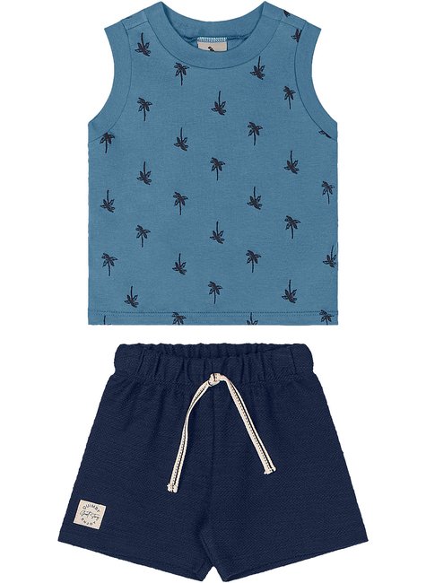 Conjunto Bebê Menino, une conforto e estilo para os dias de verão. A regata em algodão traz frescor e leveza, com estampa de coqueiros rotativa em relevo que adiciona um toque criativo e moderno ao look, gola arredondada em ribana e costura reforçada. Acompanhando, a bermuda possui etiqueta personalizada, elástico e cadarço na cintura, confeccionada em moletom flamê, que oferece maciez, resistência e liberdade de movimento, ideal para brincar e se divertir com conforto, acompanhando os pequenos em todas as aventuras do dia a dia.