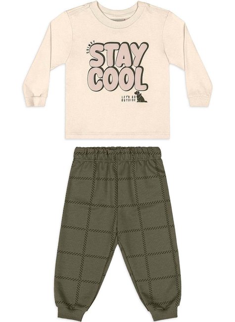 Conjunto para bebê menino que une conforto e estilo em uma única proposta. A camiseta em meia malha de algodão conta com estampa frontal em efeito puff, trazendo um visual divertido e atual. O acabamento em ribana no decote proporciona mais durabilidade e um ajuste seguro. A calça em moletom sem felpa, composta por algodão e poliéster, apresenta estampa xadrez discreta, cós com elástico rebatido e punhos em ribana com elastano, garantindo conforto ao corpo do bebê. Um conjunto prático e versátil, ideal para momentos de lazer ou passeios em dias mais frescos da estação.