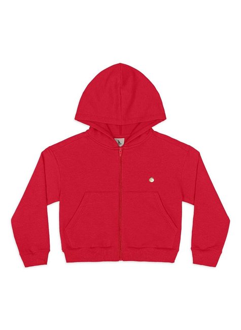 Jaqueta infantil feminina confeccionada em molecotton com felpa, ideal para os dias frios. A peça possui capuz com acabamento embutido, zíper frontal, bolsos estilo canguru e detalhe de medalha metálica aplicada no peito.