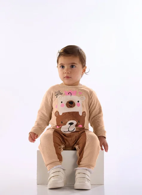 Perfeito para os dias frios, este macacão para bebê menina é confeccionado em molecotton felpado com toque macio e confortável. A peça possui estampa frontal com tema de ursinhos e aplicação de strass, além de punhos moldados e acabamento com debrum no decote e entrepernas. A abertura com botões de pressão facilita na hora de vestir e trocar. Disponível nas cores rosa dreams e caqui latte, é ideal para manter a pequena aquecida com charme e praticidade.