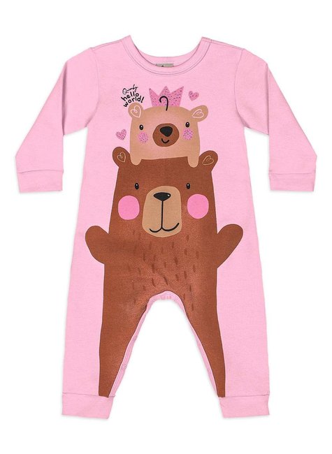 Perfeito para os dias frios, este macacão para bebê menina é confeccionado em molecotton felpado com toque macio e confortável. A peça possui estampa frontal com tema de ursinhos e aplicação de strass, além de punhos moldados e acabamento com debrum no decote e entrepernas. A abertura com botões de pressão facilita na hora de vestir e trocar. Disponível nas cores rosa dreams e caqui latte, é ideal para manter a pequena aquecida com charme e praticidade.