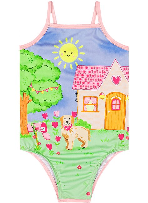 Maiô infantil confeccionado em malha UV Dry (poliéster com elastano), com proteção solar FPS 50+, que ajuda a bloquear os raios solares e garante mais segurança durante a exposição ao sol. O modelo possui alças finas, elástico embutido para melhor ajuste ao corpo e forro interno frontal e traseiro, oferecendo conforto e liberdade nos movimentos. Com estampa criativa e colorida, o maiô traz um toque divertido ao visual, sendo a escolha ideal para as meninas curtirem os dias de praia ou piscina com estilo e proteção.