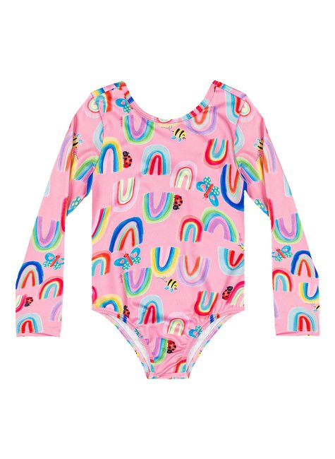 Maiô infantil de manga longa, confeccionado em malha UV Dry com proteção solar FPS 50+ para garantir a segurança contra os raios de sol, e tecnologia dry de secagem rápida. Feito de poliéster e elastano, proporciona um ajuste confortável ao corpo. Possui forro completo em microfibra, elástico nas pernas, barra reforçada e um design com gola arredondada na frente e em U nas costas. Com estampas vibrantes e divertidas, é a escolha prática e segura para o lazer na praia, clube ou piscina.