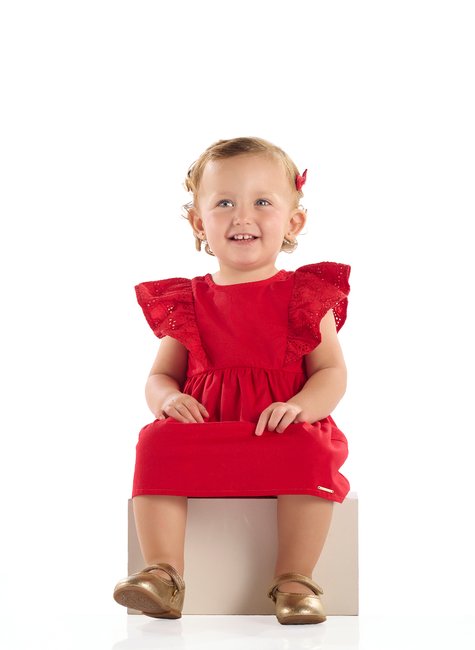 Este vestido da linha bebê da Quimby é confeccionado em tricoline (Algodão com elastano), proporcionando conforto e liberdade de movimento. Os babados em laise(Algodão) nas mangas acrescentam um toque delicado e charmoso. O modelo apresenta recortes franzidos na frente e nas costas, plaquinha metálica com strass e abertura em gota nas costas para facilitar o vestir. Uma peça ideal para momentos especiais, com leveza e estilo.