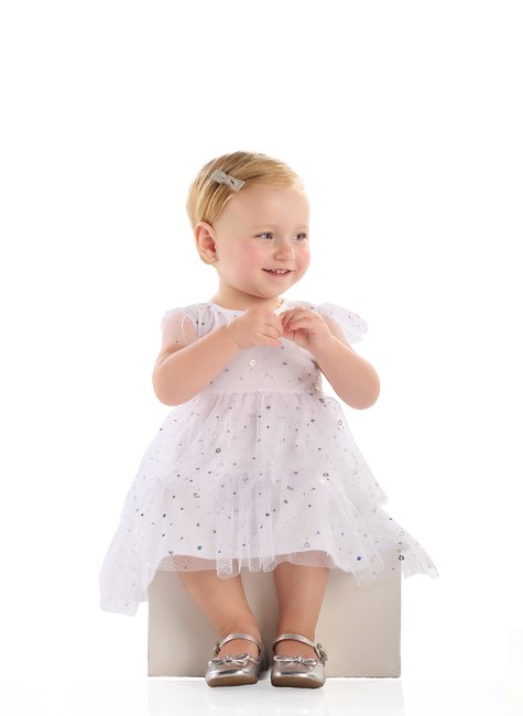Delicado e encantador, este vestido é a escolha perfeita para trazer um ar de sofisticação e leveza às ocasiões especiais. Confeccionado em tule (Poliéster), apresenta camadas franzidas que criam movimento suave e um caimento gracioso, destacando toda a delicadeza da peça. O forro em meia malha (Algodão) garante conforto absoluto, permitindo que a criança aproveite cada momento com liberdade. As mangas com franzido localizado acrescentam um charme extra, enquanto a abertura em gota nas costas, fechada com botão metálico, proporciona um detalhe refinado e funcional. Um vestido pensado para unir beleza e conforto, ideal para transformar momentos especiais em memórias inesquecíveis.