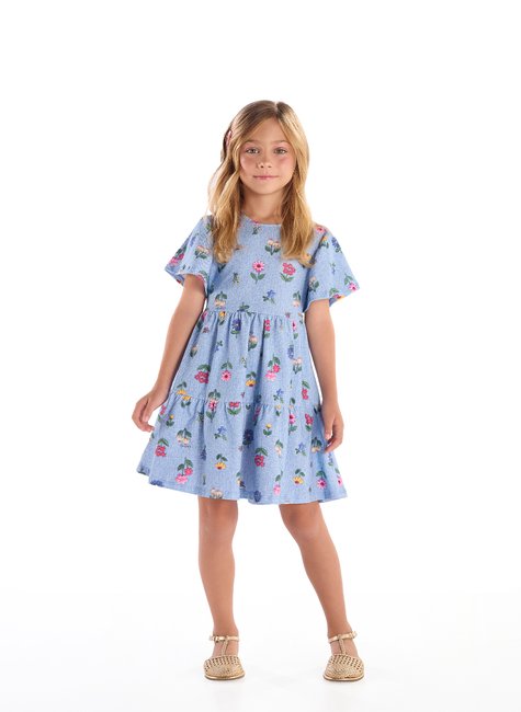 Vestido infantil confeccionado em cotton, um tecido de algodão com elastano que garante conforto e liberdade de movimento. Possui uma delicada estampa de flores, mangas curtas franzidas e recortes também franzidos na frente e nas costas, que proporcionam um caimento soltinho. Além da plaquinha metálica da marca trazendo um toque exclusivo. É a escolha perfeita para o verão, criando um visual encantador ao ser combinado com sandálias ou sapatilhas.