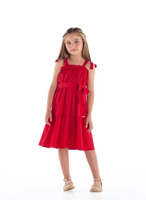 Conforto e delicadeza definem este vestido infantil confeccionado em tricoline (Algodão com elastano). Com alças ajustáveis em laço, recortes franzidos e uma faixa charmosa na cintura para amarração, é a escolha ideal para dias quentes com muito estilo. A plaquinha metálica com strass e o caimento leve completam o visual, garantindo um look moderno e feminino, perfeito para passeios ou ocasiões especiais.