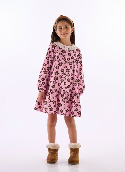 Encante com este vestido infantil feminino, perfeito para os dias mais fresquinhos. Confeccionado em cotton leve, ele oferece conforto e flexibilidade para o dia a dia. Possui estampa floral delicada, mangas longas com punho franzido e recortes com franzido total na frente e costas, que garantem ótimo caimento e leveza ao movimento. Acompanha plaquinha metálica decorativa, adicionando um toque especial à peça.